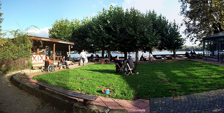 Sehr schöne Lage direkt am Rhein. Man bringt sein Essen mit (ähnlich wie bei den bayrischen Biergärten) und kauft sich dazu den Wein. Frisch gebackene Brezeln gibt es immer. In der Sommersaison gibt es gut gemachte kleinere Gerichte eines sehr bekannten Restaurants in der Nähe.