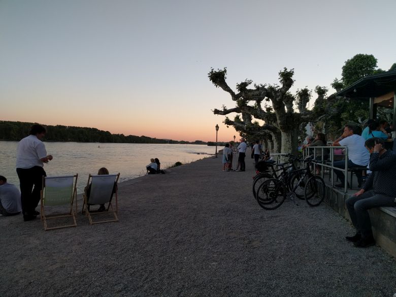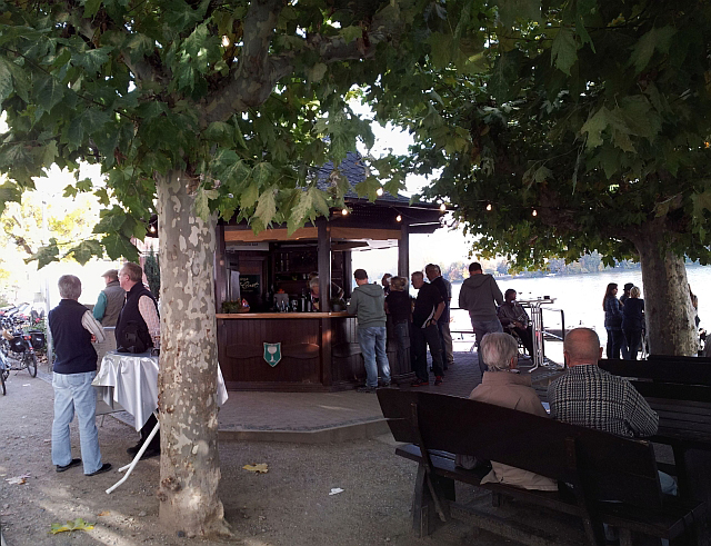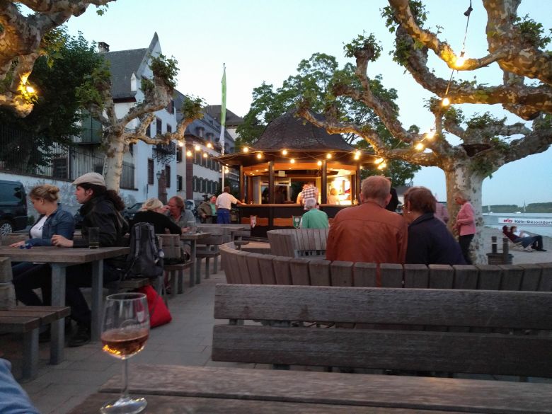 Wunderschön am Rheinufer gelegener Weinprobierstand. Stark frequentiert.