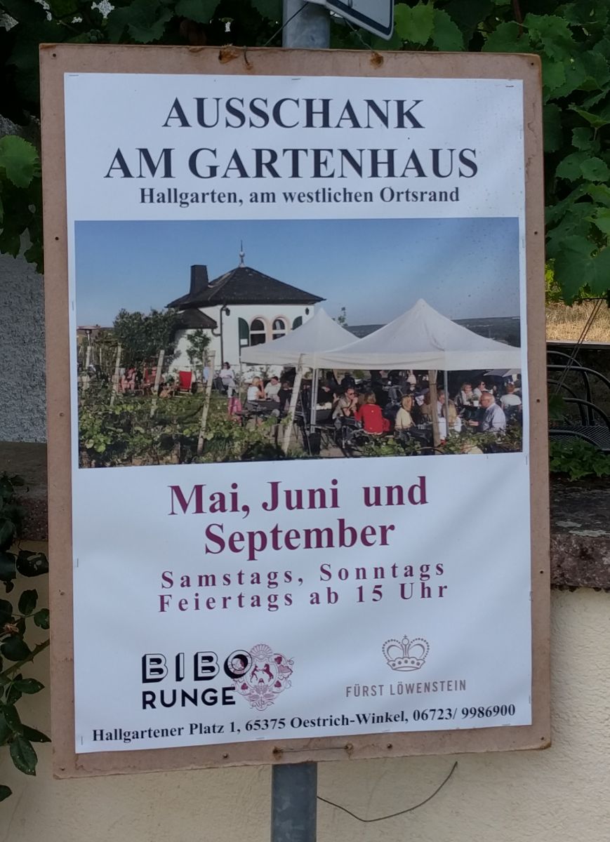 Der schönste Platz mitten in den Weinbergen im Rheingau: Unser Ausschank am historischen Gartenhaus in Hallgarten. Mit Blick in den gesamten Rheingau verwöhnen wir Sie hier mit unseren von Gault&Millau mit drei Trauben ausgezeichneten Weinen, unserem Sekt sowie leckeren regionalen Kleinigkeiten. Und das an dem Ort, wo u.a. die Revoluzzer Adam von Itzstein und Hoffmann von Fallersleben schon Anfang des 19. Jahrhunderts Ideen für mehr Freiheit und Demokratie diskutiert haben. (Eigenwerbung)