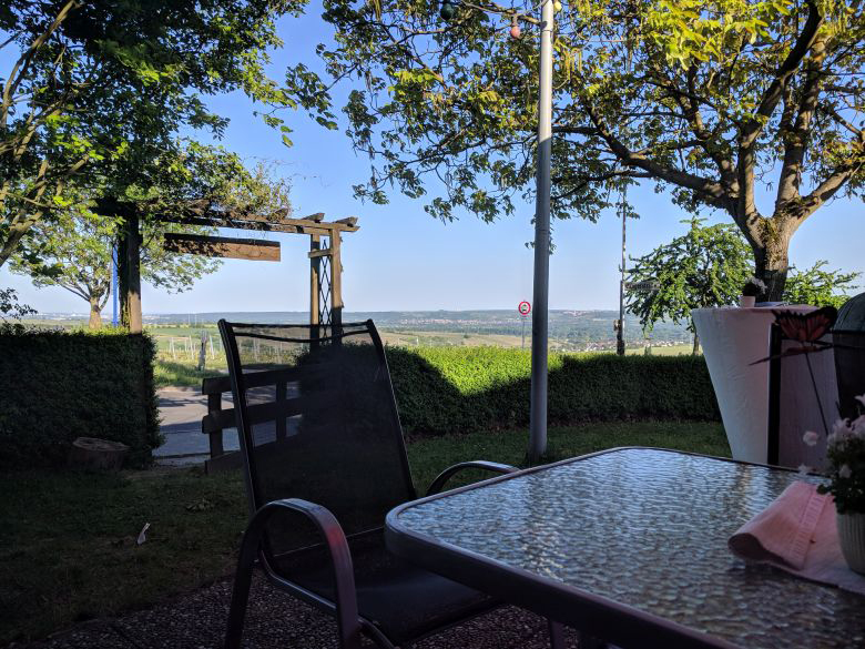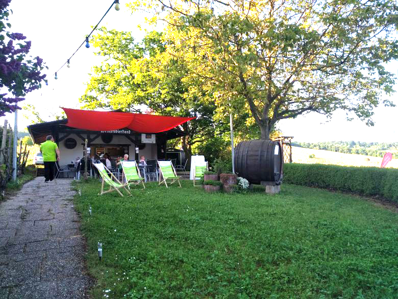 Weinprobierstand Hallgarten schöner Rheingau-Fernblick Hallgarten, Zangerstrasse 73, Hessen, Deutschland 2018:05:05 18:34:28 Google Maps / Open Street Map