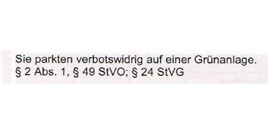 einem Verwarnungsgeld von € 30,- wegen Parken in einer Grünanlage (Juli 2019)