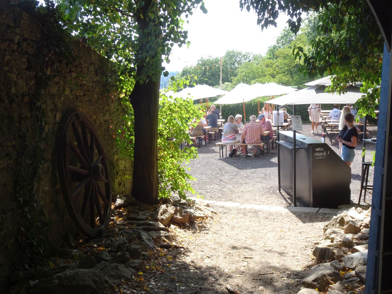 Parken: nein (Das letzte Teilstück (ab Parkplatz Opelbad oder Bergstation der Nerobahn) ist nur zu Fuß über unebene, teilweise unbefestigte, manchmal steile Wege machbar. Das bedeutet keine türblobbende Nobelkarossen neben den Tischen, keine kreissägenden Porsches und keine blubbernde Harley-Davidsons)