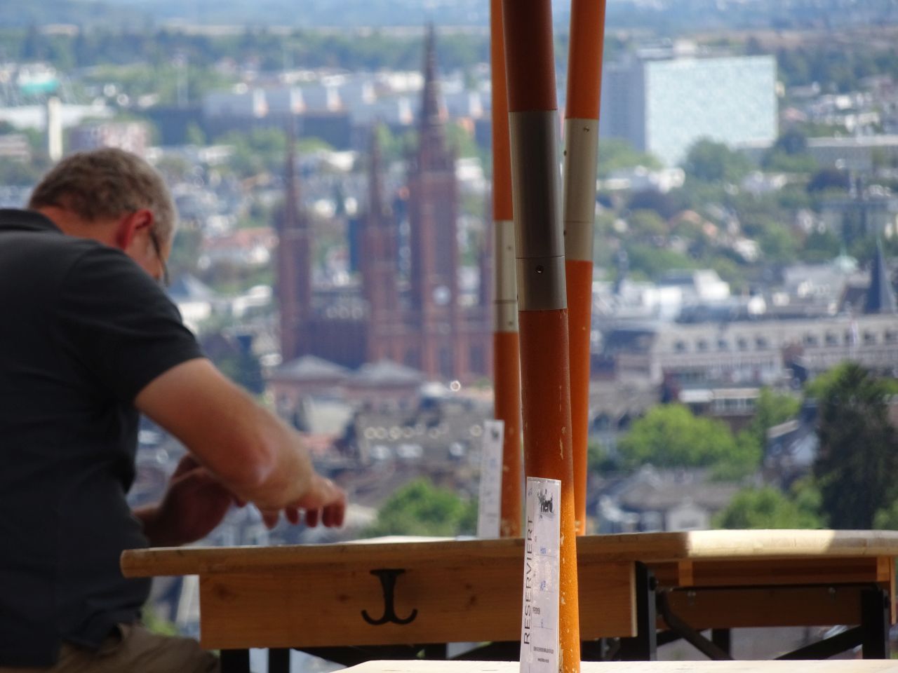 Wunderbar gelegener Weinstand oberhalb von Wiesbaden (Neroberg) mit traumhaftem Blick auf die Stadt.