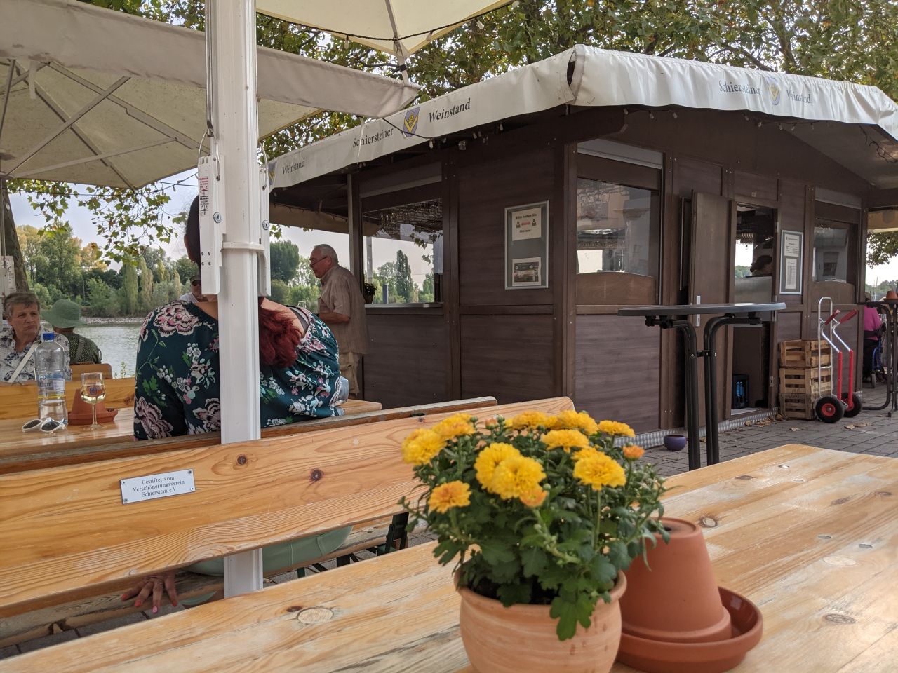 schön gelegener Weinstand am Schiersteiner Hafen