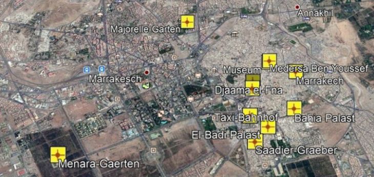Für eine Reise werden die Koordinaten aller beschriebenen Orte (blaue Adressfelder) in einer entsprechenden Koordinaten-Datei hinterlegt. Beim Klick/Tipp auf den enstsprechenden Link (zu finden unter Info der Reise) öffnet sich Google Earth (sofern installiert) und zeigt die Orte an.